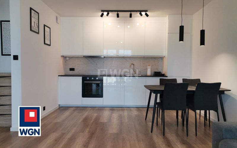 - pokój wraz z aneksem kuchennym (meble w salonie, stół z krzesłami, meble kuchenne z pełnym wyposażeniem, lodówka, kuchenka, piekarnik elektryczny, zmywarka),